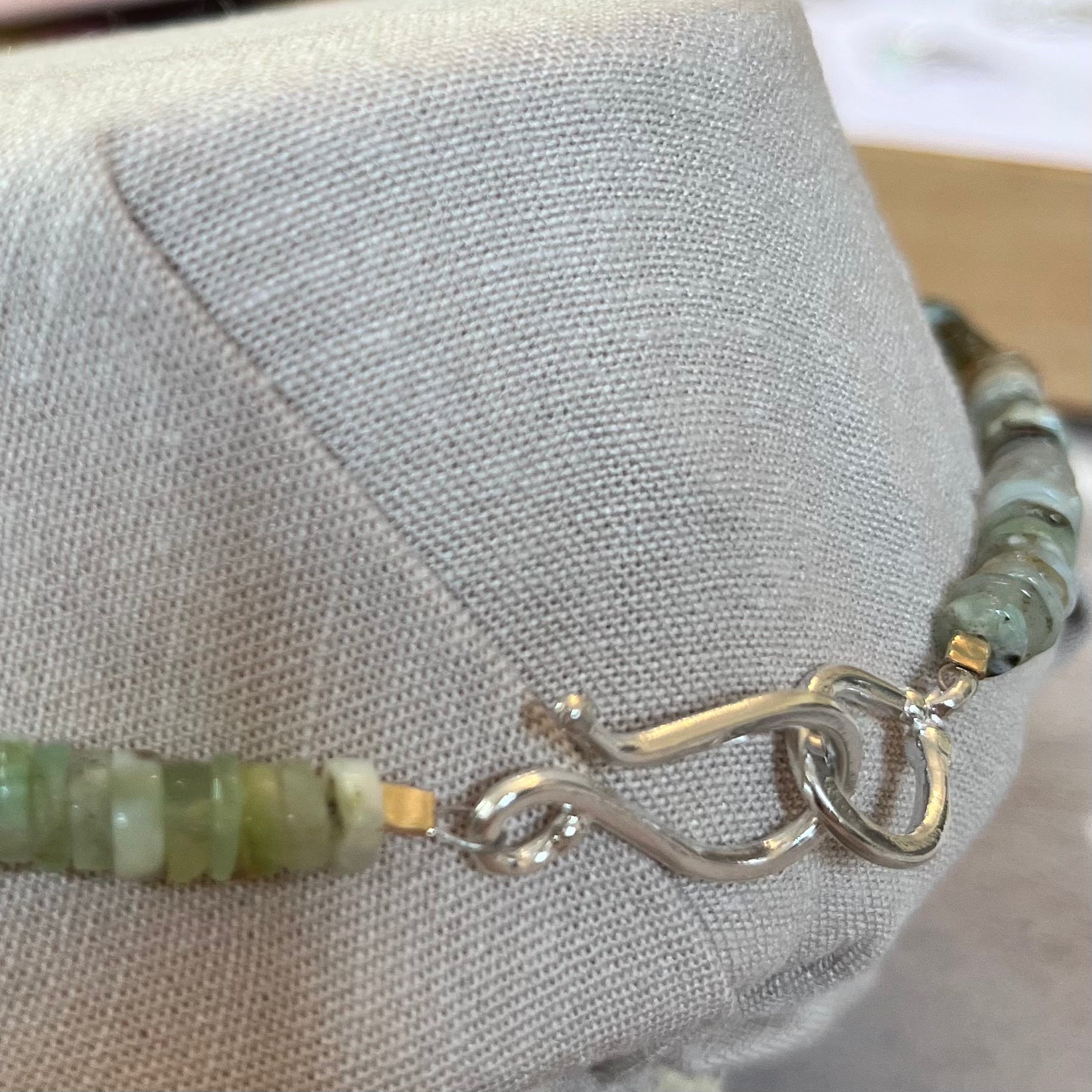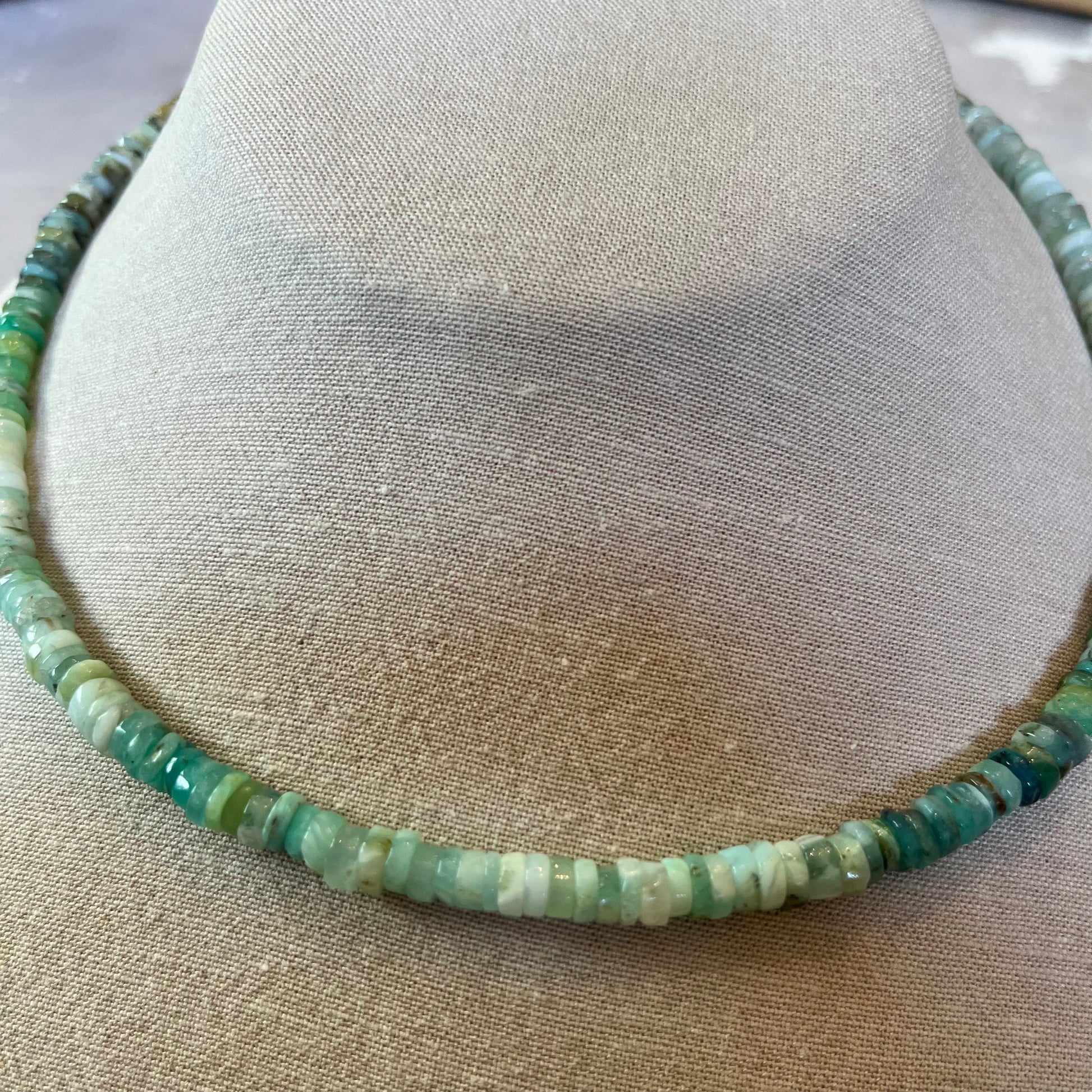 semi-precious green opal gemstones, heishi bead necklace, 8mm round beads, beautiful Ombre of greens.........